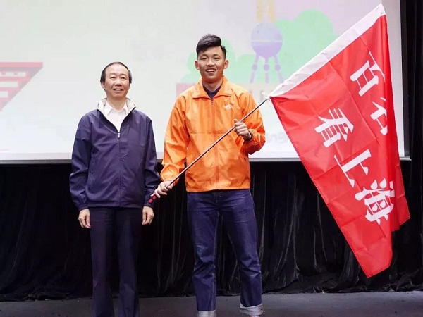 | 市海促會會長李雷鳴宣布開營并向臺灣學生代表授以營旗 |