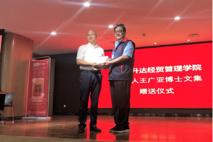 在簽署戰略協議之前,升達經貿管理學院執行董事王新奇博士向中智河南公司贈送該學院創始人王廣亞博士文集一套,表達了學校領導對于此次合作的重視和合作前景的期望。