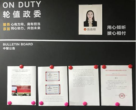 “輪值政委”制度是指除總支書記以外的黨建政委線成員,按月進行輪流值班。目前輪值政委有4人,3人負責杭州總部,1人負責分支機構。輪值政委值班期間,輪值信息將在公司專用公告欄進行公布。職工群眾可主動與當月輪值政委溝通,傾訴工作中遇到的難題與挫折,以及希望公司給予的幫助和支持,輪值政委將及時轉達職工群眾的訴求,并尋求解決方案。輪值政委制度從2018年7月實行以來,共實行了9期,收集員工反映的涵蓋考試、拓展、職業素養、團隊建設等方面意見建議,這些方面的問題最后提煉為作為鏗鏘七人談主題。2019年,輪值政委還將負責每月新員工談話,向新員工及時宣導黨建政委線的定位作用;在人力資源部開展離職員工正式談話前,負責每月離職員工的非正式談話,主動了解離職員工的真實思想狀態,并及時反饋給組織;負責公司、工會等全體性活動的事后跟蹤,調查職工參與活動的積極性和活動的滿意度反饋等,關注職工狀態,助力企業文化建設發展。