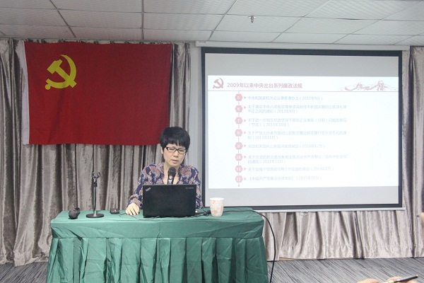 在授課的過程中,黨支部書記蔡如蓉圍繞認識反腐敗斗爭的新形勢、談“四風”、增強拒腐防變的能力等理論內容開展了講解,精心挑選了與日常生活、工作息息相關的違法違紀案例進行深入剖析,提醒大家時刻注意規范自身言行,樹立廉潔從業的意識,做到“守紀律、講規矩”。黨課緊扣反腐倡廉這一主題,通過理論講解與案例分析相結合的形式,進行深入淺出地講解,加深了公司全體黨員及干部職工對廉潔教育豐富內涵的領會和理解,增強了廉政教育的針對性和實效性。