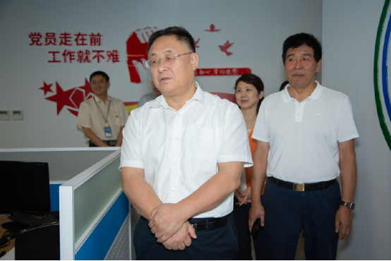 中智公司黨委書記、董事長卜玉龍、中智江蘇公司黨支部書記、總經理吳曉蘭在建鄴區區委組織部副部長郭震環陪同下參觀南京市建鄴區高新區(科技園)展廳
