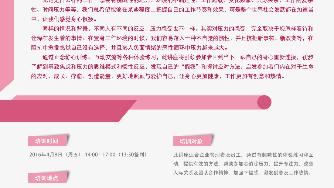 4月8日《創(chuàng)造員工幸福感與職場解壓》