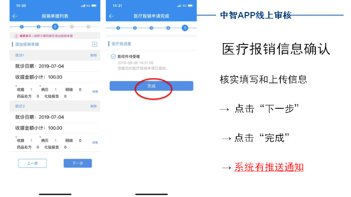 報銷進(jìn)度實時推送,隨時查詢報銷結(jié)果,及時補(bǔ)充材料