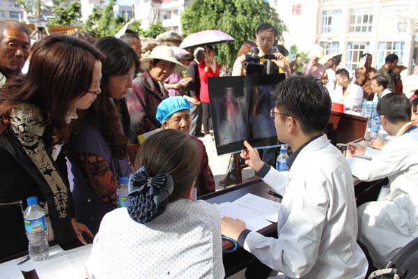 2014年8月31日至9月2日,中智公司經(jīng)多方努力,協(xié)調(diào)上海市衛(wèi)生計(jì)生委派遣同濟(jì)大學(xué)附屬同濟(jì)醫(yī)院,上海市同仁醫(yī)院等醫(yī)療專家團(tuán)隊(duì)一行15人,赴公司定點(diǎn)扶貧地區(qū)云南省大姚縣開展義診培訓(xùn)活動(dòng),由心血管類疾病(高血壓、心臟病)、風(fēng)濕類疾病(類風(fēng)濕、腰腿痛等)、代謝類疾病(甲狀腺等)等領(lǐng)域組成的專業(yè)資深醫(yī)療專家,結(jié)合當(dāng)?shù)爻R姴〖芭嘤?xùn)需求,對(duì)大姚縣縣鄉(xiāng)醫(yī)療機(jī)構(gòu)的200余名鄉(xiāng)村醫(yī)生及管理人員開展了《醫(yī)療糾紛的防范與處理》、《院前急救的處置》等具有針對(duì)性的專題業(yè)務(wù)培訓(xùn),并會(huì)同當(dāng)?shù)乜h醫(yī)院各科室醫(yī)生,選擇在金碧鎮(zhèn)集日當(dāng)天,共為大姚縣600余名群眾開展醫(yī)療診治和醫(yī)療咨詢等公益活動(dòng)。